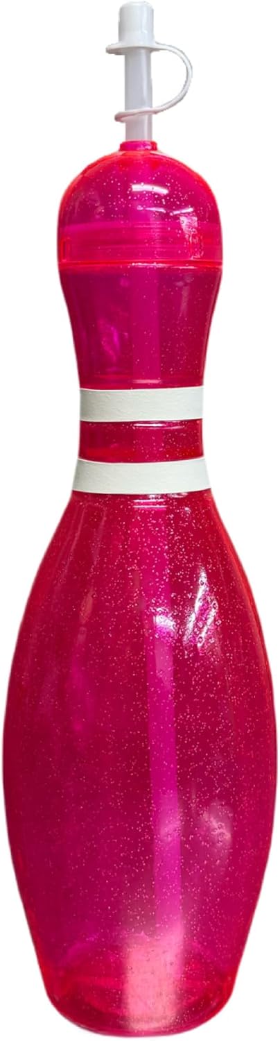 This pack comes with 6 large bowling pin water bottles in assorted colors which include one of each: Blue, Green, Pink, Purple, Orange & Red. Holds 32 ounces and stands 13 inches tall (larger than others on the market). Stripes on the pin are rubber grips. All colors “glow” under black light. Proudly Made in the USA of food grade plastic. Not dishwasher safe and not recommended for hot liquids.